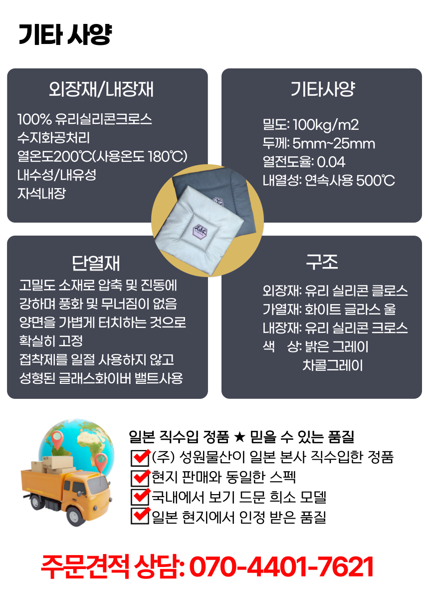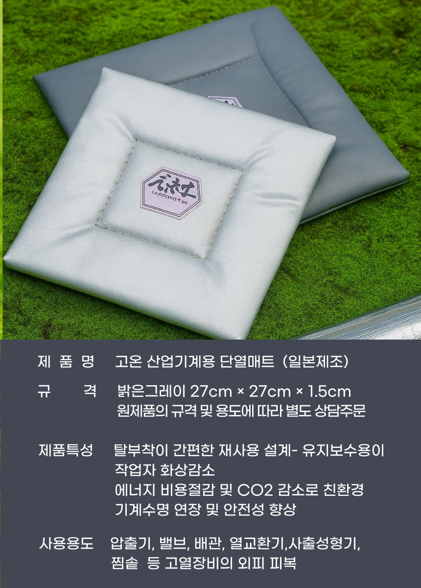 고온기계의 복사열 97%차단용 매트(자석타입), 보온효과를 통한 에너지절감. 27cm x 27cm