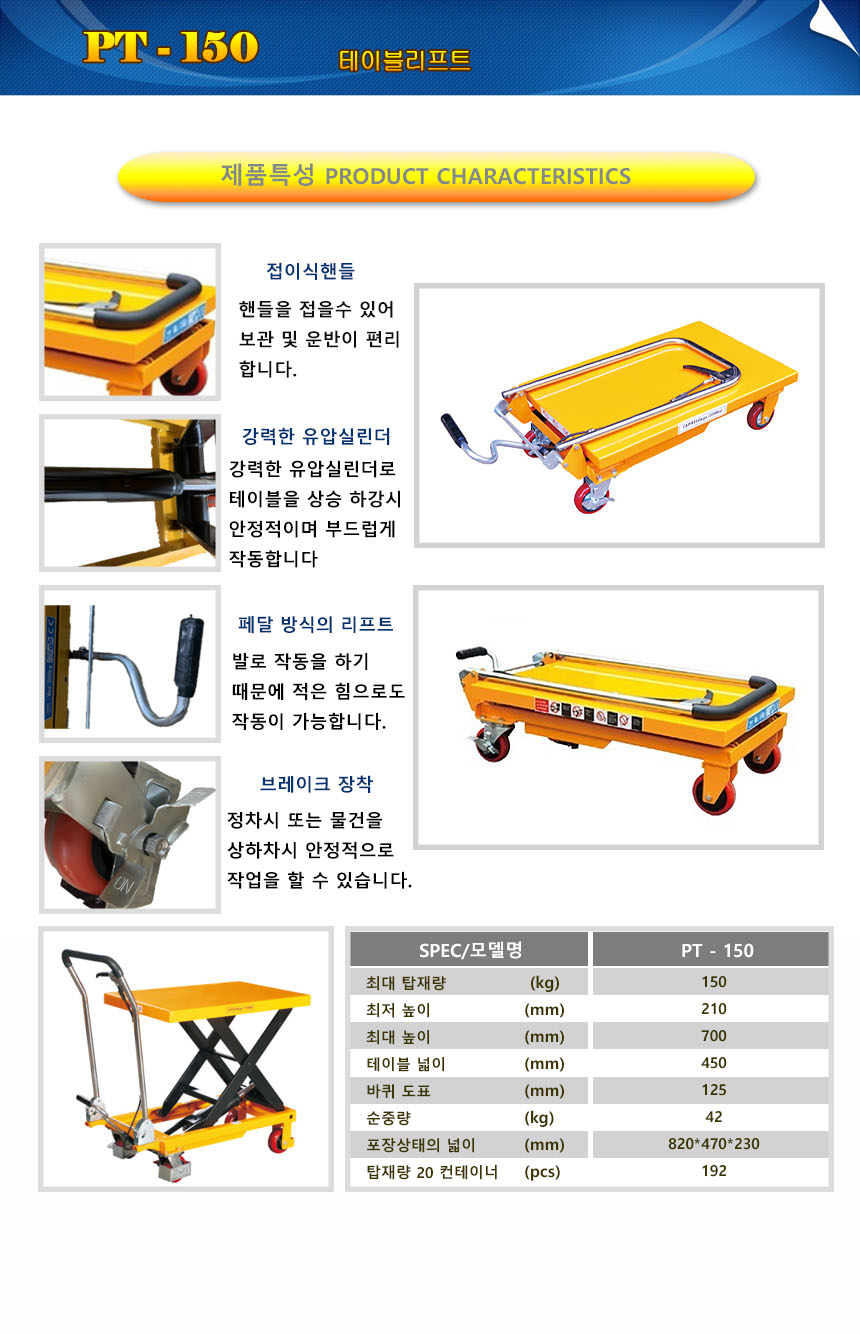 운반리프트/핸드파렛트/테이블리프트PT-150