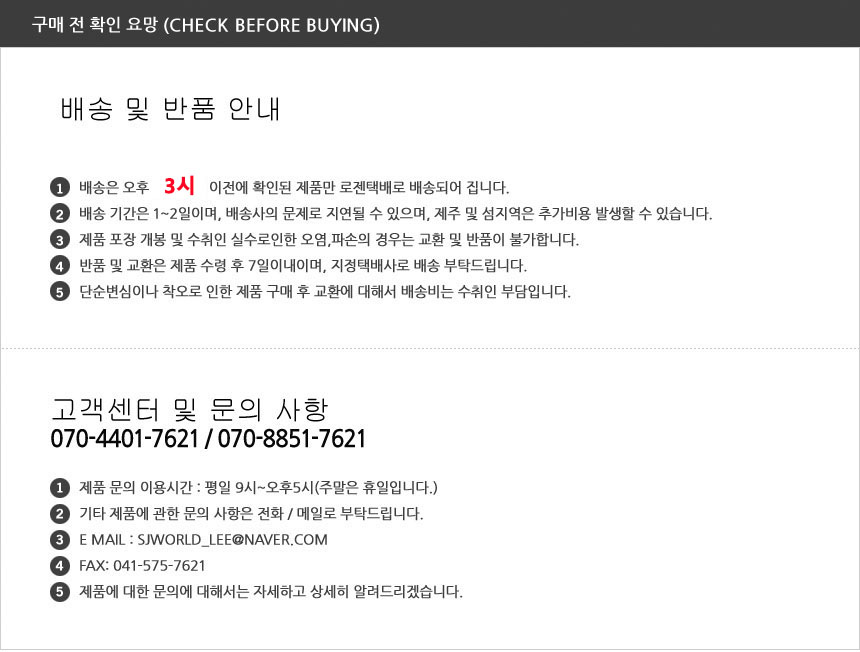 ※ 상품사이즈 치수는 재는 방법과 위치에 따라 1~3cm 오차가 있을 수 있습니다.